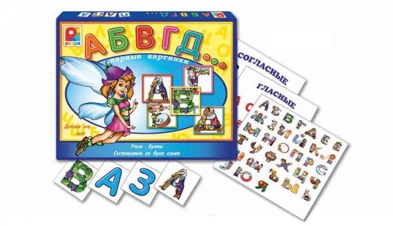 Ваш малыш интересуется буквами и пробует читать? Предложите ему эту игру. Она поможет малышу с помощью забавных картинок запомнить буквы русского алфавита, научит складывать из них его первые слова. В игре имеются карточки с алфавитом, с гласными и согласными буквами, карточки с обычными изображениями букв и букв в картинках. Карточки с русским алфавитом, изготовленные из плотного картона, помогут малышу в первоначальном изучении букв, звуков. В игровой форме ребенок легко и с удовольствием усвоит новый материал, рассматривая и запоминая красочные изображения на карточках. Игра предназначена для детей дошкольного возраста