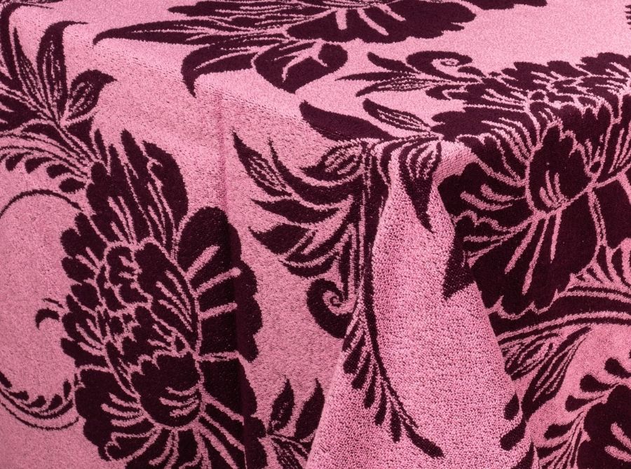 Практичная и стильная махровая простыня — универсальное изделие для вашего дома. Теплая зимой и не жаркая летом, её можно использовать как покрывало на кровать или диван. Выполнена из 100 % хлопка с жаккардовой структурой и растительным узором «Николетта» в нежном баклажановом оттенке. Идеальна для ванной, спальни или гостиной.