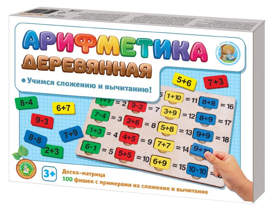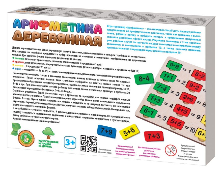 Настольная игра-пазл «Арифметика деревянная» – это отличный способ дать вашему ребёнку представление о простых математических действиях «сложение» и «вычитание», развить логику и побудить к применению полученных знаний в жизни.