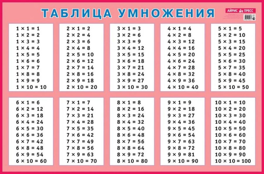 Таблица умножения для заучивания