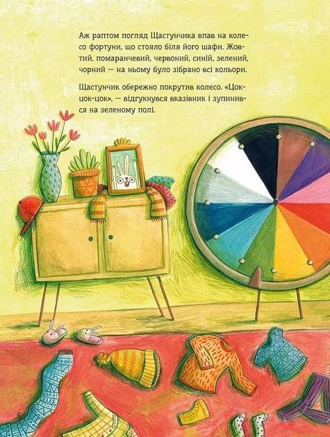 Зайчик Щастунчик щодня стикається з важливими виборами, такими як вибір одягу, іграшок та перекусу. Втомившись від цього, він вирішує дати волю випадковості і визначати свої дії за допомогою колеса фортуни. Кожен колір кола вказує на певну дію чи вибір, що робить життя зайчика цікавішим та непередбачуваним. Проте, чекаючи на випадання певного кольору, він раптово розуміє, що справжнє щастя полягає не випадковості, а в самому процесі прийняття рішень та вибору.